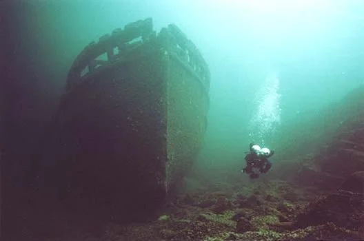 This 136' long, triple-masted schooner went down in 1889 on a rocky shoal and has a maximum depth of 120' deep.